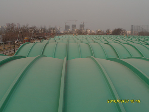 近年來,隨著我國石油化工、醫(yī)藥、市政污水處理等行業(yè)的快速發(fā)展,生產(chǎn)及生活中的廢水、廢氣收集處理越來越引起人們的關(guān)注,特別是由于污水池?zé)o罩體密封導(dǎo)致的環(huán)境污染更為嚴重。對此,我公司有著多年從事玻璃鋼裝備研制生產(chǎn), 經(jīng)過兩年多的技術(shù)攻關(guān),研制開發(fā)出集廢氣回收、復(fù)合性保溫為一體的污水池專用高性能玻璃鋼集氣罩。該產(chǎn)品具有耐腐蝕性強、物理性能好、阻燃性能優(yōu)良、耐老化、使用壽命長等特點。同時,新產(chǎn)品在使用過程中所具備的密封特性,徹底杜絕了廢氣外溢,達到了改善空氣質(zhì)量,保護環(huán)境的目的。